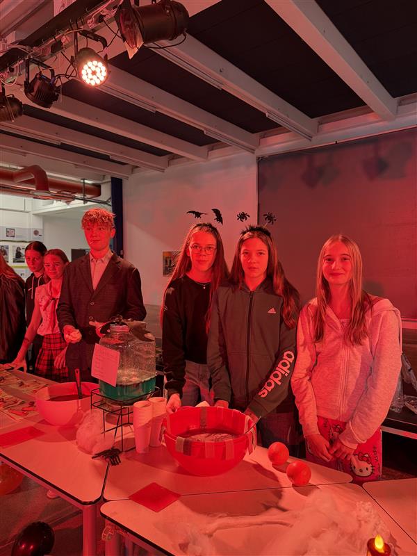 Auch heuer zeigte die Klasse 4A wieder großen Einfallsreichtum und Engagement für das Kenia-Projekt. Mit einem liebevoll gestalteten Halloween-Buffet verwandelten die Schülerinnen und Schüler die große Pause in ein gruseliges Genuss-Erlebnis: Es gab köstliche Mehlspeisen mit schaurigen Augen und kleinen Geistern, dazu einen selbstgebastelten Spielautomaten, bei dem tolle Preise zu gewinnen waren.
