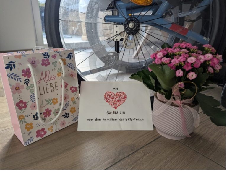 Gemeinsam mit dem Elternverein haben die Eltern des BRG Traun Spenden gesammelt, um Emilia auf ihrem Weg der Genesung zu unterstützen. Die Spenden wurden mit dem Elternvereinsbeitrag zu Schulbeginn eingesammelt.