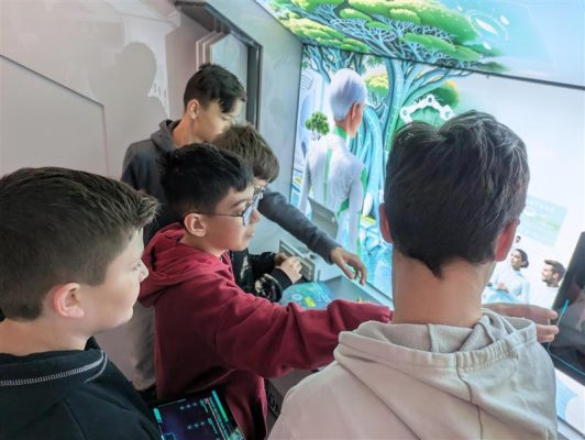 Wir, die 3e-Klasse, hatten beim Besuch im Star Truck am 20. März 2026 viel Spaß. Wir haben viel über MINT-Berufe gelernt. Mint bedeutet: Mathematik, Informatik, Naturwissenschaften und Technik. Es gab verschiedene Stationen, die alle eines gemeinsam hatten: Sie haben etwas mit Zukunft zu tun. Wir lernten viel über verschiedene Berufe mit Elektronik, künstlicher Intelligenz und so weiter. Am besten fanden wir die Station mit dem Roboter, wo wir eine Strecke für den Greifarm programmiert haben.